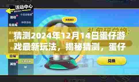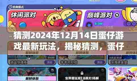 摘要:,,据猜测,蛋仔游戏将在2024年12月14日推出最新玩法。玩家可期待独特的体验,包括全新的关卡设计、创新的道具使用以及更加丰富的游戏内容。未来新玩法将带来全新的挑战和乐趣,让玩家在游戏中体验更多惊喜。抢先了解并尝试这些新玩法,将让玩家在游戏中更具优势。期待蛋仔游戏的未来更新,为玩家带来更多精彩体验。