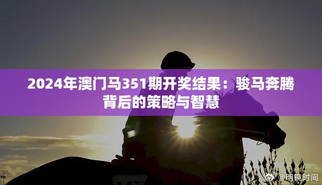 澳门马351期的结果呈现出一场策略与智慧的大比拼,结果显示,不仅赛马的实力是决出胜负的关键因素,骑手的配合以及赛前准备的策略要素同样显得至关重要。骏马背后的故事同样引人入胜,赛马为这场赛事带来了额外的紧张与激动。