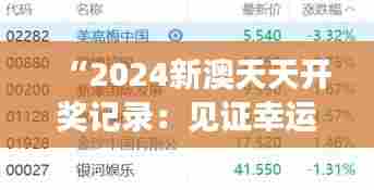 在这个充满变数的世界里,每个新的日子都承载着无限的可能与新的希望。“2024新澳天天开奖记录:见证幸运与期待的交织”,在澳门这片激情与梦想并存的土地上,每一天的彩票开奖都成为了人们日常期待的焦点。它是幸运的象征、是期待的源泉,更是社会凝聚力的体现。本文旨在记录和分享2024年澳门彩票开奖的每一个精彩瞬间,一起感受那些与幸运交织的期待时刻。