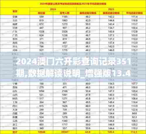 增强版13.479显示的2024年澳门六开彩查询记录351期数据解读,我们可以从几个维度进行详细分析:
