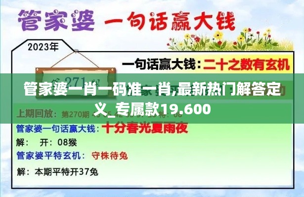4. 政策联动:专属款19.600政策将与澳门的其他政策如“一肖一码准一肖”紧密结合,形成政策叠加效应,为行业提供全方位的政策支持。