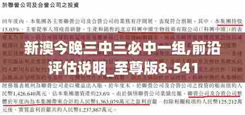 在澳门特别行政区,政策文件的发布是日常行政工作的重要组成部分。今天,我们聚焦的主题是“新澳今晚三中三必中一组,前沿评估说明_至尊版8.541”,旨在为公众及政策相关人士提供一份详尽的政策解读。