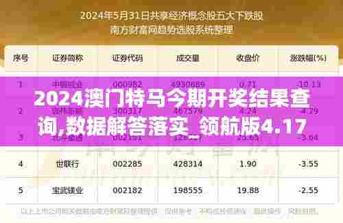尊敬的读者们,您好!本篇文章将带您了解2024年澳门特马今期开奖结果查询,数据解答落实_领航版4.176的最新政策文件。作为澳门区政府官方发布的重要信息,我们将深入探讨和分析政策文件的具体内容,并为您提供全面的解答与指导。