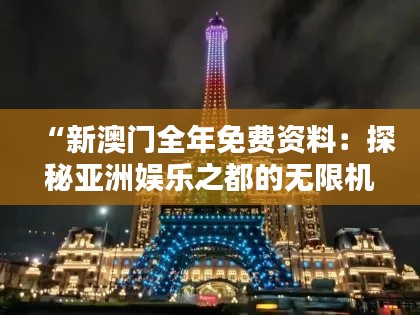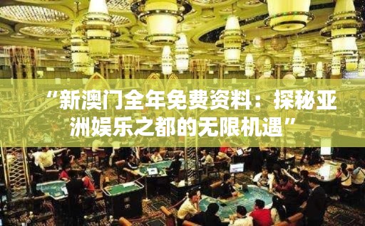 随着澳门特别行政区在经济多元化发展道路上不断迈步,新澳门的面貌也日新月异。澳门这座充满活力的城市,不仅因其深厚的历史底蕴和文化遗产吸引着世界游客,更因其蓬勃发展的博彩和娱乐业而闻名。本文将带您了解澳门政策文件中关于"新澳门全年免费资料:探秘亚洲娱乐之都的无限机遇"的精彩内容,一探究竟这座充满活力的亚洲娱乐之都所蕴藏的无限潜力。
