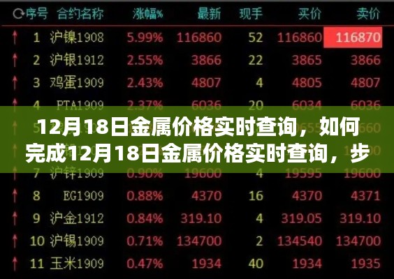 完成12月18日金属价格实时查询不仅仅是一个任务,更是学习和掌握一项技能的过程,通过本文的指引,相信您已经对如何查询金属价格有了清晰的认识,在实际操作中,不断积累经验,结合多种信息和分析方法,您将更准确地把握金属市场的脉络。