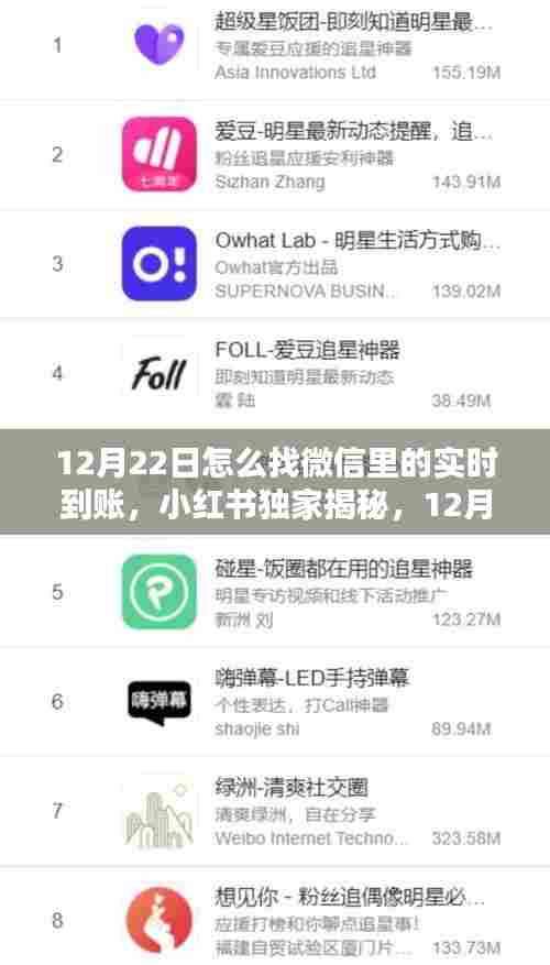 亲爱的小红书社区的小伙伴们,你们好!今天我要和大家分享的是关于如何在12月22日轻松找到微信里的实时到账的小技巧,在这个数字化时代,微信支付已经成为我们生活中不可或缺的一部分,掌握实时到账的查询技巧,不仅能让我们的生活更加便捷,还能确保资金安全,接下来就跟随我的脚步,一起探索微信的奥秘吧!
