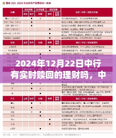 摘要:寻找中行实时赎回理财产品的信息,记录于2024年12月22日。中行理财小记中,探讨实时赎回的秘密宝藏。对于想要灵活使用资金的投资者来说,实时赎回的理财产品是一大便利。目前市场上是否有这样的产品,需进一步了解和研究。