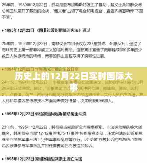 每年的12月22日,世界历史长河中都会涌现出许多重要的事件,这一天,对于全球各地的政治、经济、文化等领域都有着深远的影响,本文将回顾这一天发生的重大事件,探寻其中的历史意义。