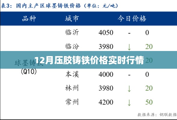 随着冬季的到来,各类工业原材料的市场行情逐渐受到广泛关注,压胶铸铁作为一种重要的工业原材料,其价格变动直接关系到制造业及相关产业链的发展,本文将为您带来12月压胶铸铁的实时价格行情,以及影响价格的相关因素。