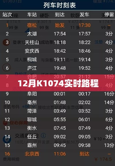随着冬季的脚步逐渐临近,K1074次列车也迎来了繁忙的十二月行程,作为连接东西的重要交通线路,K1074次列车的实时路程信息对于旅客来说至关重要,本文将为您详细介绍K1074次列车在十二月的实时路程,助您顺利出行。