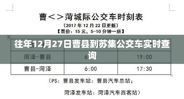 随着社会的快速发展,公共交通在人们的日常生活中扮演着越来越重要的角色,特别是在冬季,对于像曹县到苏集这样的重要线路,公交车的运营情况更是备受关注,本文将详细介绍如何在往年12月27日进行曹县到苏集公交车的实时查询,帮助大家合理安排出行时间,提高出行效率。