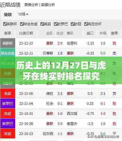 随着互联网的普及和直播行业的飞速发展,虎牙直播作为行业领军平台,吸引了众多网友的关注,虎牙直播上的实时排名不仅反映了主播的受欢迎程度,也体现了互联网文化的流行趋势,本文将简要介绍历史上的12月27日与虎牙直播实时排名之间的关系,并探讨如何观看和分析虎牙在线实时排名。