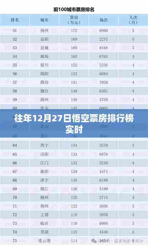 每年的电影市场都充满了竞争与激情,而票房排行榜更是关注的焦点,本文将围绕往年12月27日悟空票房排行榜实时情况展开分析,探讨电影市场的热点和趋势。