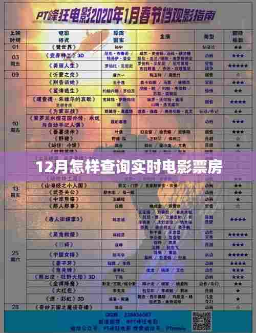 随着电影产业的蓬勃发展,越来越多的人对电影票房数据产生了浓厚的兴趣,特别是在一些大片上映的热门时段,如12月圣诞节前后,人们迫切想要了解实时电影票房情况,在这样一个充满期待的月份里,我们该如何查询实时电影票房呢?