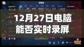 随着科技的飞速发展,电脑录屏功能变得越来越普及和重要,在特定的日期如12月27日,电脑能否进行实时录屏视频呢?答案是肯定的,不过,能否成功录屏还取决于一些因素,包括电脑硬件配置、软件支持以及操作正确性。