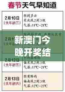 "新澳门今晚开奖结果"指的是澳门地区正规赌博场所,在特定的晚上公布各类赌博游戏的中奖结果。这一过程涉及到众多的彩民和利益相关者,因此其安全性和准确性是至关重要的。今晚的开奖结果,不仅要公平、公正,且需能经得起市场的检验和用户的挑战。