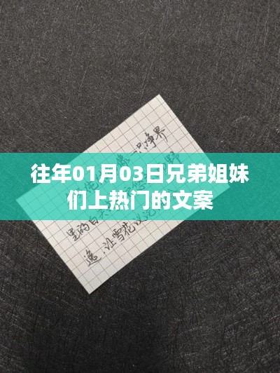 在往年的1月3日,我们兄弟姐妹们一起度过了许多难忘的时光,那时,我们还年轻,怀揣着梦想,一起努力奋斗,我们互相支持,共同成长,面对挑战,勇往直前,那些日子,我们一同创造了许多热门话题,成为了亲朋好友间传颂的佳话。