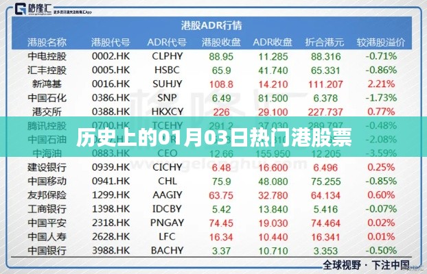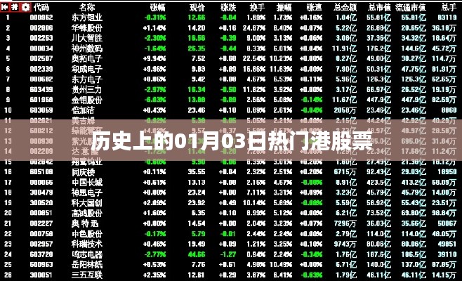 在金融市场波澜壮阔的历程中,每一个日期都承载着独特的记忆,本文将聚焦于每年的1月3日,回顾这一天在香港股市中备受瞩目的股票,这些股票不仅见证了香港资本市场的成长,也反映了当时的经济环境和社会事件的影响。