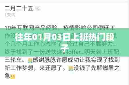 往年1月3日的上班热门段子,是上班族们心情的写照,也是他们放松心情、调节气氛的方式,它们以幽默、自嘲的方式表达了上班族的心情,让我们更加了解这个群体的真实状态,在新的一年里,让我们一起努力,追求更好的生活!