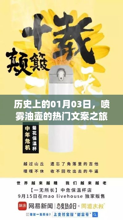 在浩瀚的历史长河中,每一个日子都承载着无数的故事与变迁,本文将带您走进历史上的01月03日,探寻喷雾油壶如何在这一天成为热门话题,为您呈现精彩的热门文案之旅,让我们一同跟随时间的脚步,感受那些令人难以忘怀的瞬间。