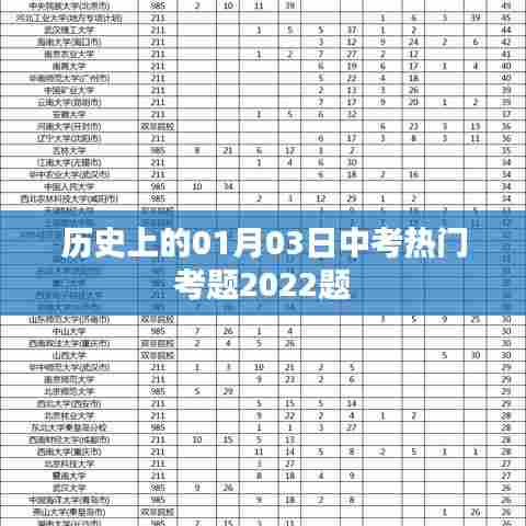 历史上的每个月份都承载着丰富的知识和故事,而01月03日这一天,在中考的舞台上,往往会出现一些具有代表性的考题,本文将围绕“历史上的01月03日中考热门考题2022题”进行梳理和分析,帮助考生了解中考趋势,为备考提供方向。