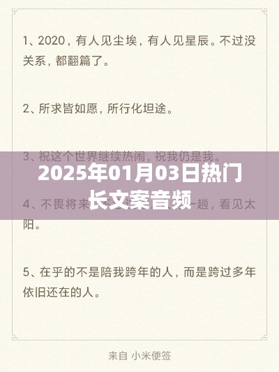 随着人们对精神文化需求的日益增长,长文案音频逐渐成为热门内容,它们通常以文字为基础,通过声音演绎、情感渲染等方式,将信息传递给听众,热门长文案音频的特点主要体现在以下几个方面: