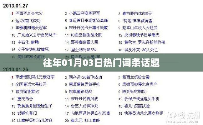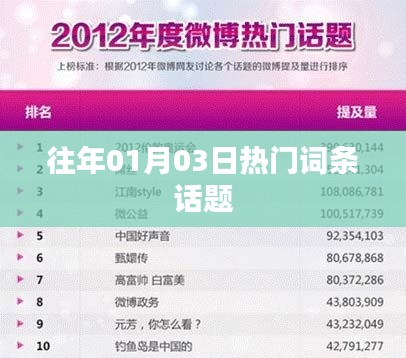 在每年的1月3日,全球各地的网民都会关注许多热门词条话题,这些话题涵盖了娱乐、科技、社会、体育等多个领域,吸引了无数人的目光,本文将带你回顾往年这一天发生的重要事件和热门话题。