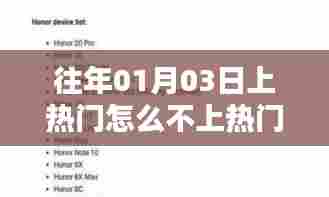 在探讨为何“往年01月03日上热门”话题能够一度走红之前,我们需要了解当时的社会背景、流行文化和用户参与度等因素,它可能是因某个突发事件、热门事件或节日而产生的话题,也可能是因为某些知名人士或网红的推广而迅速传播,话题本身的创新性、趣味性和共鸣度也是吸引用户关注的重要因素。