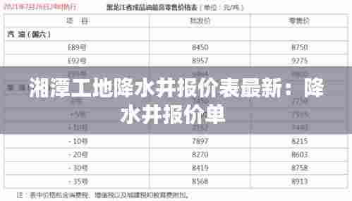 标题:湘潭工地降水井报价表最新发布,为您节约成本提供参考
