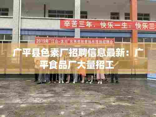 转载请注明来自浙江大溪洋泵业制造有限公司,本文标题:《广平县色素厂招聘信息最新:广平食品厂大量招工 》