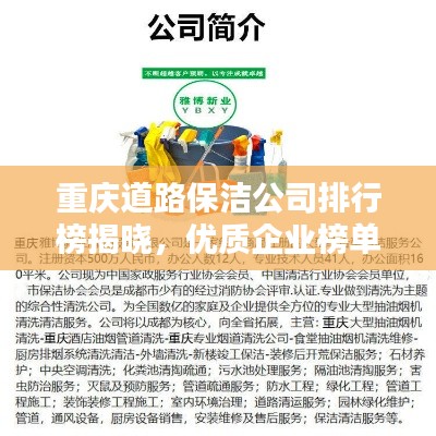 随着城市化进程的加快,道路保洁工作变得越来越重要,在重庆,许多道路保洁公司以其出色的服务质量和业绩赢得了良好的口碑,本文将介绍重庆道路保洁公司的排名,以便为需要服务的客户提供参考。