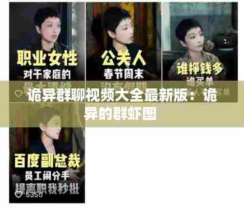 随着互联网的普及和社交媒体的快速发展,各种奇特的视频内容层出不穷。今天,我们要为大家揭秘的是一款名为“诡异群聊视频大全最新版”的神秘视频集合。这款视频集合汇聚了各种诡异、悬疑、惊悚的群聊视频,吸引了无数网友的目光。接下来,就让我们一起走进这个神秘的世界,探寻其中的奥秘。