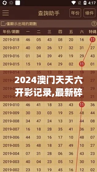 "天天六开彩"是一种数字型的彩票游戏,在澳门广泛流行。这个游戏以其简单的玩法、高度的互动性和有趣的开奖方式为特点,深受广大彩票爱好者喜爱。具体来说,"天天六开彩"允许参与者选择1至38之间的任何数字,并且游戏每天开奖六次,玩家有机会六次尝试夺得奖金。