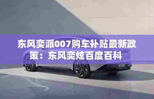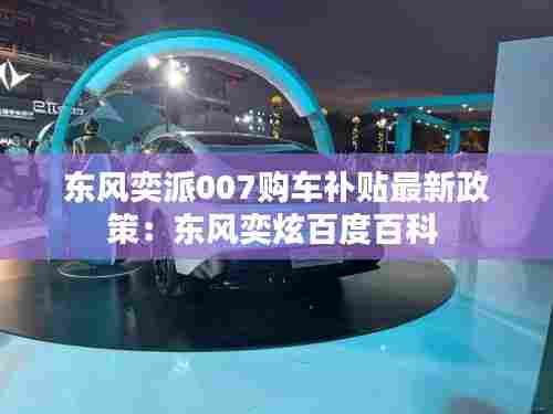 随着新能源汽车市场的持续火爆,东风汽车公司近日推出了针对旗下车型东风奕派007的购车补贴最新政策。该政策旨在进一步推动新能源汽车的普及,降低消费者的购车成本,提升消费者对东风奕派007的购买意愿。