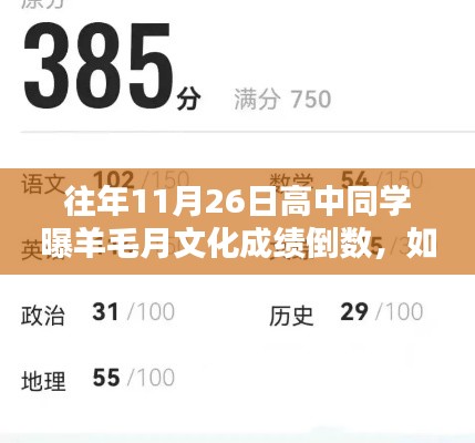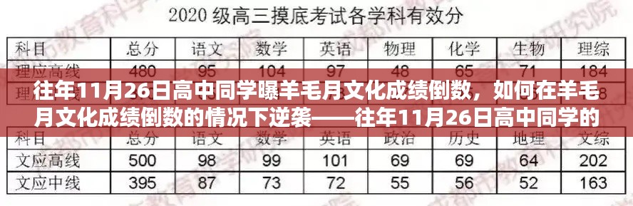 每年的11月,对于高中生来说都是一个重要的时间点,特别是到了羊毛月,考试频繁,成绩波动较大,对于即将面临考试或希望提升学习成绩的同学们来说,如何有效利用这段时间变得尤为关键,本文将分享往年一位高中同学在羊毛月文化成绩倒数的情况下如何逆袭的经验,帮助初学者或进阶用户完成学业上的突破。