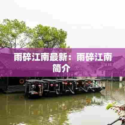 江南,一个充满诗意和浪漫的地方,自古以来就被誉为“人间天堂”。而“雨碎江南”,这个独特的词汇,更是将江南的雨景描绘得淋漓尽致。每当细雨蒙蒙,仿佛整个江南都被一层薄纱笼罩,给人一种朦胧而神秘的感觉。