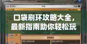随着游戏的不断升级更新,玩家们对于游戏攻略的需求也日益增长,我们将为大家带来一篇关于“口袋刷环”的最新攻略,无论你是新手还是资深玩家,本文都将为你提供实用的技巧和建议,帮助你轻松掌握口袋刷环的精髓。