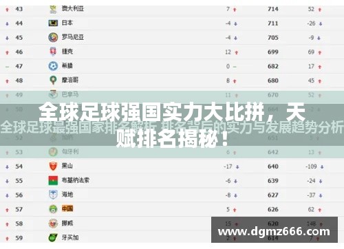 足球,这项全球最受欢迎的体育运动之一,吸引了无数球迷的关注和热爱,在这个充满竞争和激情的舞台上,各国球队凭借出色的表现,展现出各自的天赋和实力,本文将根据世界足球领域的综合实力、历史成就、现役球员表现等因素,为您呈现世界天赋排名足球。