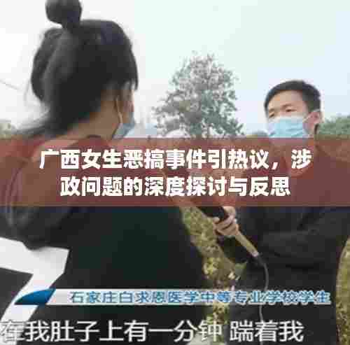广西女生恶搞事件再次引发社会关注,这一事件不仅仅是一起简单的娱乐事件,更是涉及到社会道德、价值观以及政治问题等多个方面,本文将围绕这一事件展开分析,探讨其背后的深层次问题,并反思我们应该如何正确对待类似事件。