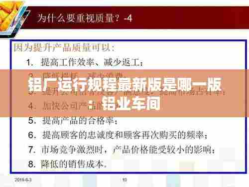 新版规程对铝厂质量管理进行了细化,包括原材料采购、生产过程控制、产品质量检验等方面。规程要求企业加强质量管理体系建设,提高产品质量。