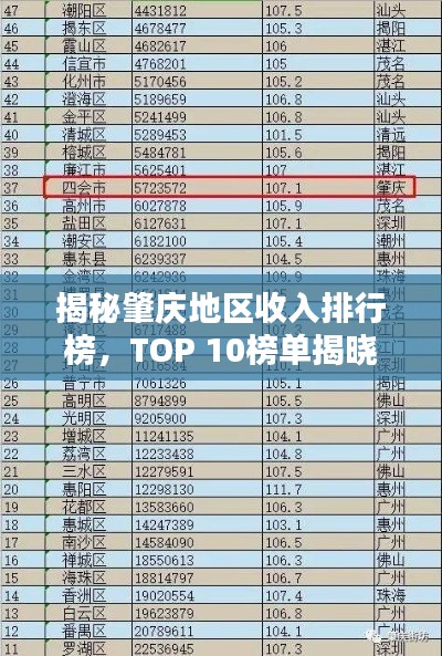 随着经济的不断发展,肇庆地区的收入水平也在逐年提高,本文将介绍肇庆地区收入排名前十名,从多个角度展示该地区经济发展的现状和未来潜力。