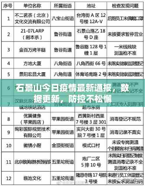 随着全球疫情的持续发展,我国的疫情防控工作依然严峻,石景山区作为北京市的一个重要区域,其疫情防控工作一直备受关注,本文将围绕“石景山今日疫情通报最新”这一主题,为读者带来最新的疫情动态和防控措施。
