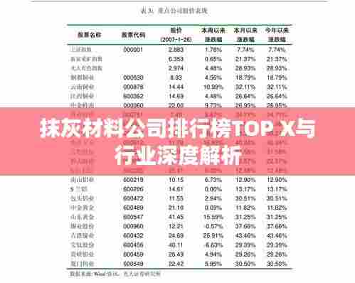 随着建筑行业的快速发展,抹灰材料作为重要的建筑辅材,其市场需求不断增长,本文将介绍几家在行业内具有较高知名度和市场份额的抹灰材料公司排名,并对行业现状进行分析。