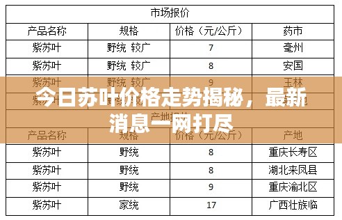 随着人们对健康和养生的关注度不断提高,中药材市场也日渐繁荣,苏叶作为一种常见的中药材,备受关注,本文将围绕“今日苏叶价格走势最新消息”这一主题,探讨苏叶的市场行情、价格走势以及未来展望。