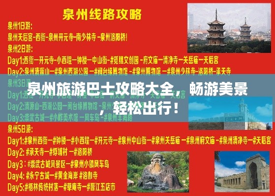 通过本文的泉州旅游巴士攻略,希望能为您的泉州之行提供便利,在游览泉州的过程中,请合理安排时间,遵守交通规定,确保旅途愉快,祝您在泉州留下美好的回忆!