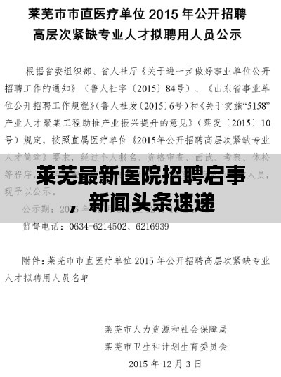 莱芜市各大医院正积极开展招聘活动,诚邀海内外医学英才加盟,让我们共同为市民的健康事业努力,共创美好未来!