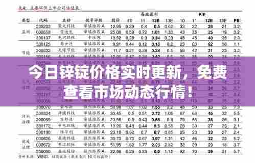 在金属交易市场中,锌锭的价格动态一直备受关注,随着全球经济的发展以及工业需求的增长,锌锭的价格波动成为了投资者和企业决策者的重要参考指标,本文将为您带来今日锌锭的最新价格,并介绍如何免费查看,以便您及时了解市场动态。
