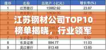 钢材行业是国民经济的重要支柱之一,江苏地区作为中国重要的钢铁产业聚集地,拥有众多的钢材企业,本文将介绍江苏钢材公司排名前十名,这些公司在规模、产量、质量、销售等方面均处于行业领先地位。