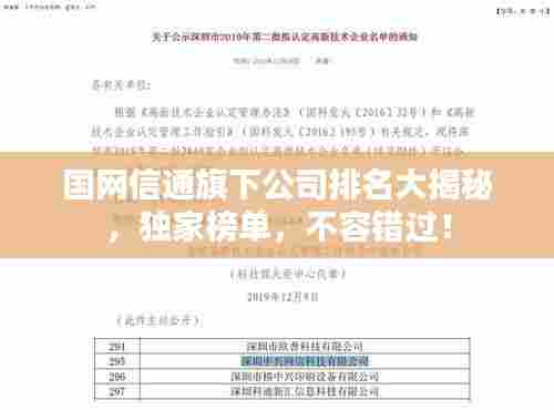 随着信息技术的迅猛发展,国网信通作为行业领军企业,其旗下公司备受关注,本文将深入探讨国网信通旗下公司的排名,带您了解这些企业在行业中的表现及未来发展趋势。