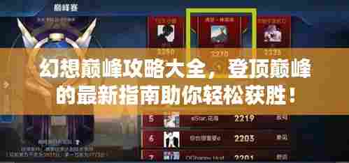 幻想巅峰作为一款热门的角色扮演游戏,吸引了众多玩家的加入,在这个充满奇幻的世界里,玩家们通过探险、战斗、养成等方式,不断提升自身实力,追求巅峰荣耀,本文将为大家带来一份最新版的幻想巅峰攻略大全,助你轻松登顶。